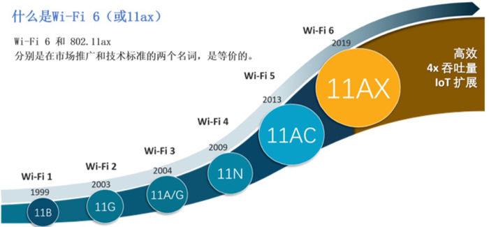 在2019年WiFi聯(lián)盟將WiFi重新命名,按照出現(xiàn)時間的先后,分別定義為WiFi1到WiFi6,現(xiàn)在我們經(jīng)常提及的WiFi6也就是EEE802.11ax。
